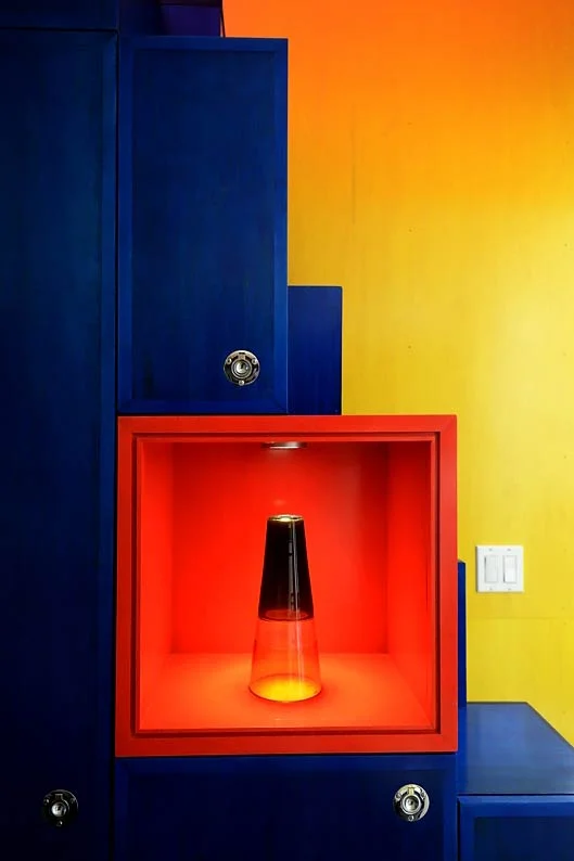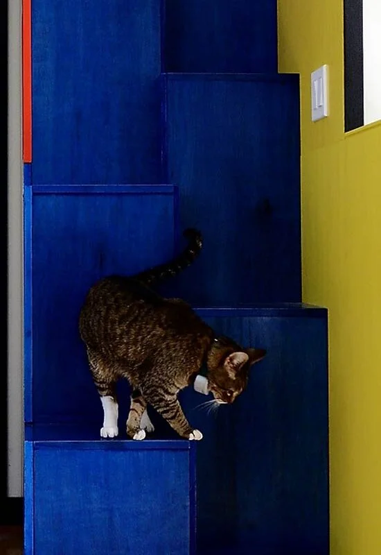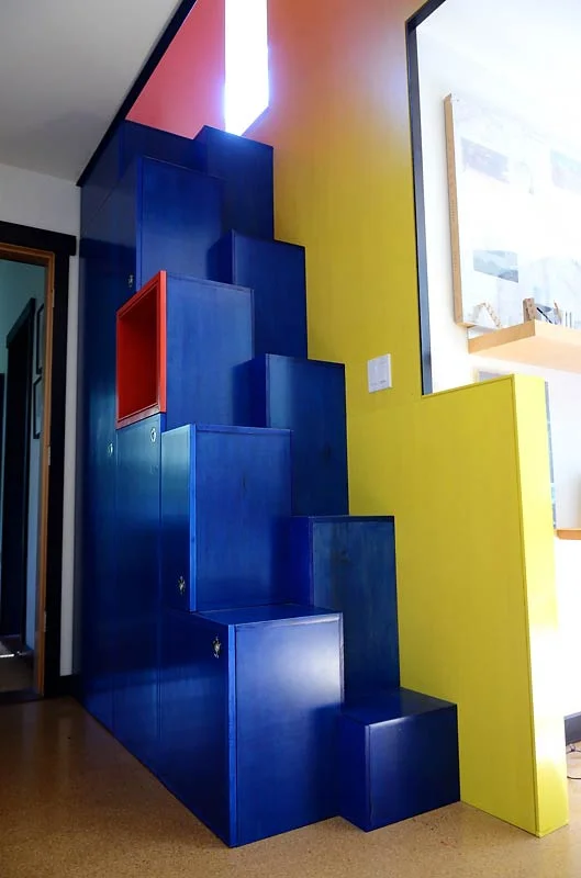 Alternating stairs with storage and display niche – “Kaidan Dansu.” Glass blown in Venice as prototypes for Torrefazione lights.