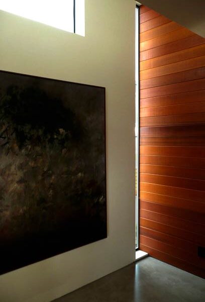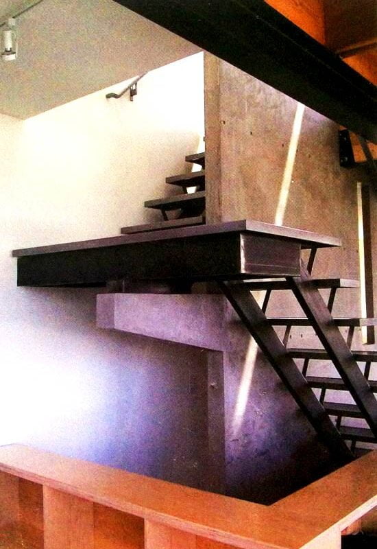 Transparency of metal stairs that filters down three stories. Highlighting materials and space with light and shadow.